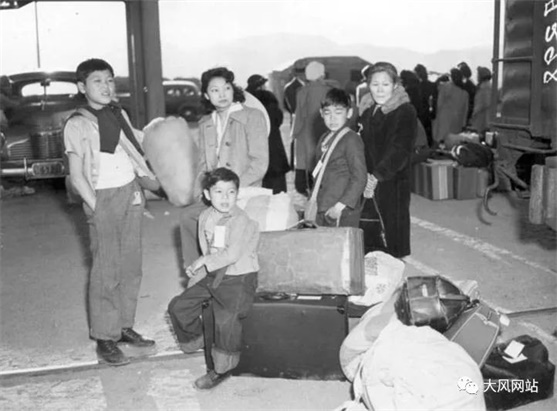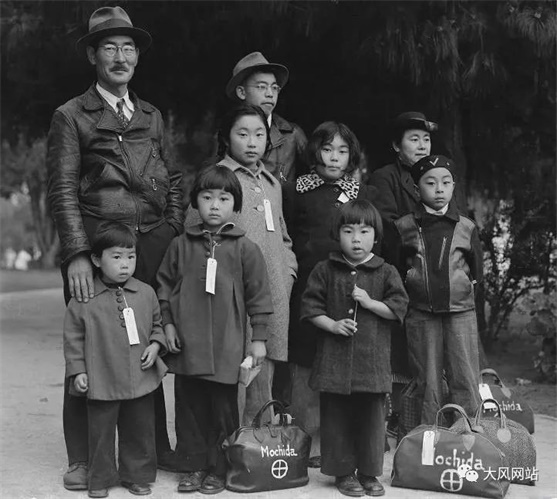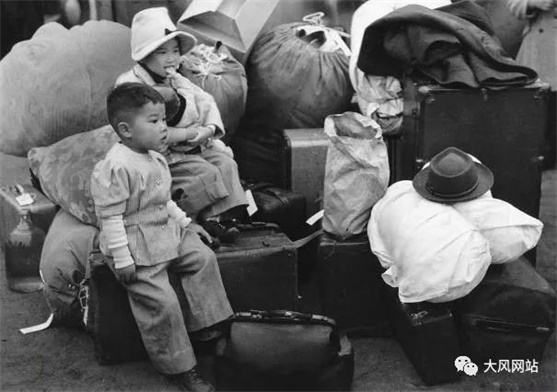 这一家日裔美国人,脖子挂上牌子,跟纳粹治下的犹太人进集中营一样。
