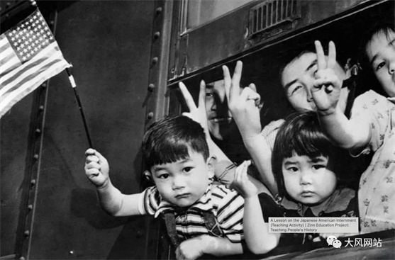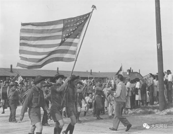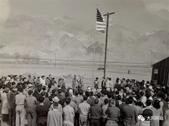 效忠美国的日裔美国公民们,进集中营也不忘挥舞美国旗效忠。