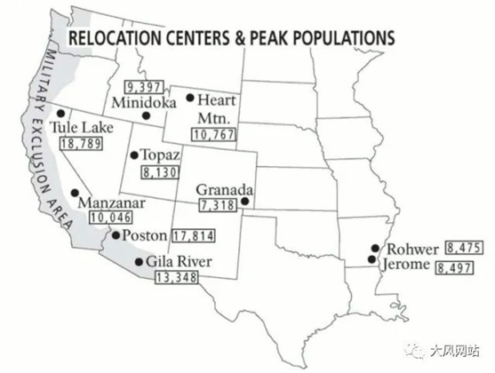 日裔美国人集中营分布图