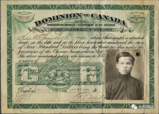 1923年加拿大排华法案严禁华人移民加拿大,只准外交官、学生、商人、移民部长特批者这四类华人短期入境,其他华人一律不准入境,连英籍华人也不准入境。