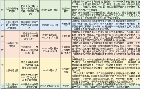 另外还有“节日特色游”,游客们可以到景山看“良工匠艺——木作非遗文化展”,到天坛体验太平燕等非遗文化的独特魅力及雅乐过大年活动的精彩,还可到颐和园观看“祥龙贺岁——颐和园藏龙纹题材文物特展”,到动物园观看“万牲寻龙”展,到紫竹院拓印主题年画,感受龙年节日氛围。