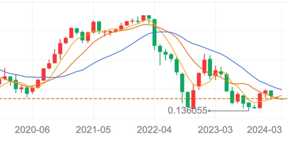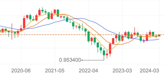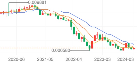 这是从2020年美元开启无限量宽后的主要货币兑美元汇率月K均线。我们可以发现如下特征。