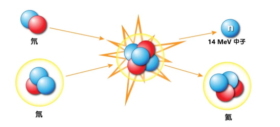 核聚变的原理比核裂变简单,比较轻的原子核,例如氘(D)和氚(T),结合成较重的原子核,例如氦,同时放出巨大能量。