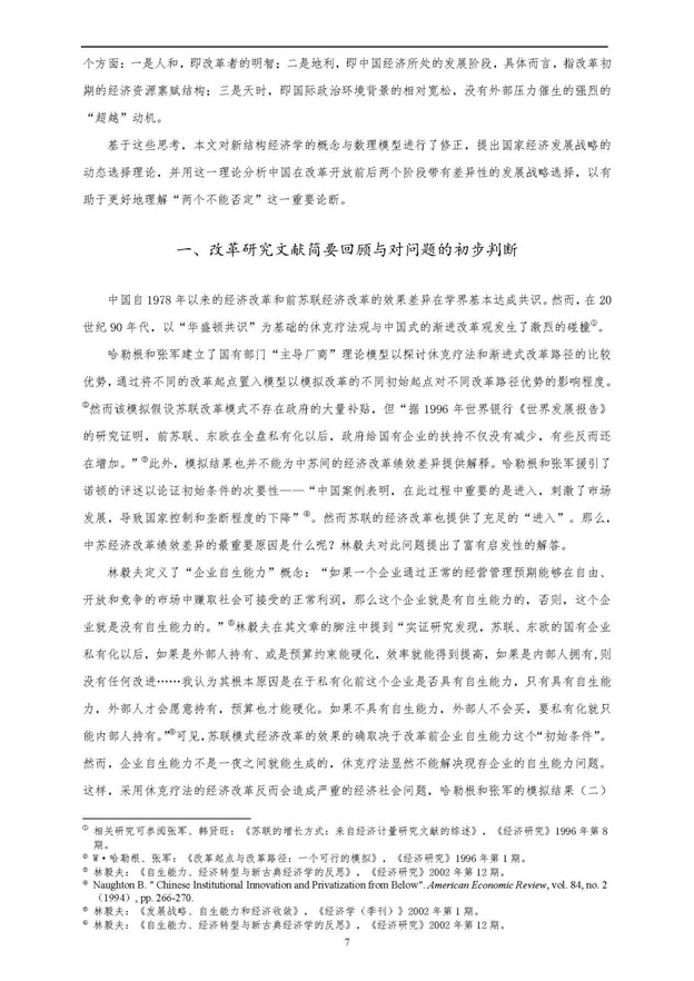 事实上,国内主流经济学研究也不支持林毅夫等(2006)的判断。例如,杨汝岱、姚洋(2008)通过实证研究,明确提出:“我们的核心命题是:实行有限赶超有利于一国的经济增长。林毅夫等(1994)认为,中国在过去20多年之所以取得高速经济增长,是因为采取了比较优势发展战略,即我们的产品技术含量符合国际劳动分工所确定的水平, 也就是劳动密集型技术。参照最近的研究成果,这一判断需要进行修正。”