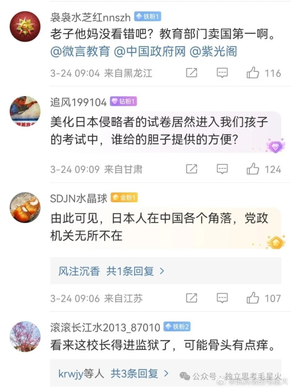 美化日本侵略者的试卷居然进入我们孩子的考试中,谁给的胆子提供的方便?