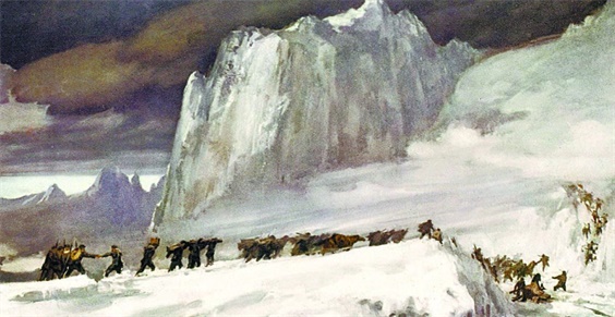 风雪之中的队伍,