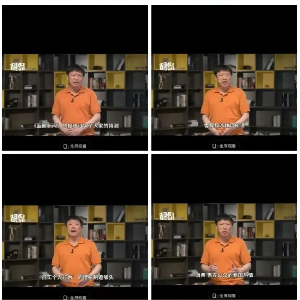 那个退休之后异常活跃的总编,这次一改对美国萝莉岛事件和美国镇压反战学生的迟钝,这次反应既迅速又激烈,先是写了一篇小作文,又做了一个小视频,说香飘飘涉嫌用“员工个人行为”的摆拍制造噱头:“戏弄、消费公众的淳朴爱国热情”,还带着特别的语气说“中国又出现了一家爱国企业”。而他给香飘飘扣如此大帽子的所谓事实依据是来自蓝鲸新闻的一则报道,他用来作为关键证据的内容,却在稍后被蓝鲸新闻从报道中给删除了。到底是这家企业制造了噱头,还是新闻媒体制造了新闻?这位退休总编都来不及搞清楚,就急不可耐地下了定论。为什么就不能让消息多飞一会儿?你到底在急什么?
