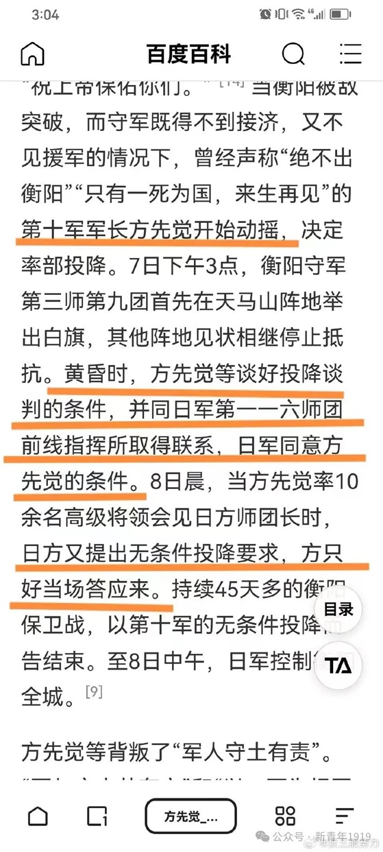 所以自始至终,我们从来没有否认过衡阳保卫战的伟大,也从来没有否认过衡阳保卫战中我军将士的浴血奋战,我们无法接受的是——为方先觉这样一个向日寇无条件投降的人唱赞歌!