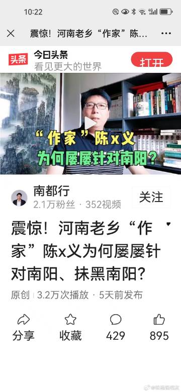 还有人在今日头条炮制出视频,质问《“作家陈x义”为何屡屡针对南阳、抹黑南阳?》