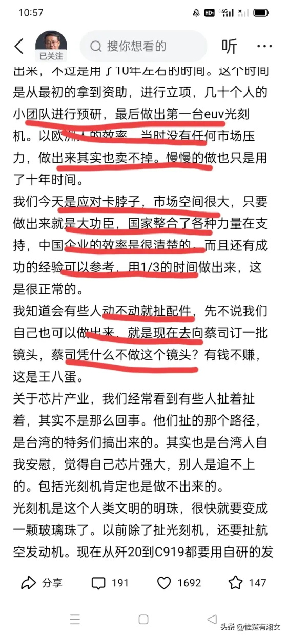 第四、光刻机跟歼20到C919的路程一样,以前你们都说搞不了航空发动机啥的,现在不都用自研的发动机照样飞上了天吗!