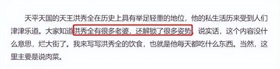 一开始,他们从下三路入手,说太平天国将领们喜欢“玩女人”,洪秀全的老婆数量从最开始传说的几十位,陆续变成了几千、几万个。
