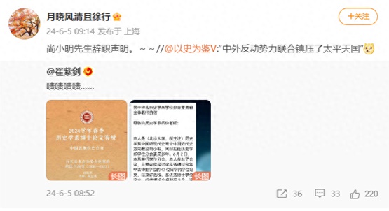 根据尚小明的辞职声明以及各方的表态,这起争议居然是由“太平天国”引起的。