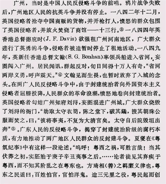 1849年英国新任香港总督文翰带着兵船从省河闯入广州的时候,广州老百姓群起反对,一天之内就拉起了十万人,省河两岸呼声震天,把文翰吓得不敢入城。