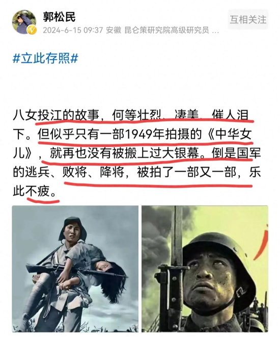这是资本的具象表现,是资本立的项,找的演员,写的剧本,拍的电影,那为什么资本最近热衷于把我们的手下败将拍的“形象高大”,以至于现在有人在网上带一些奇怪的风向,这是值得警惕的。