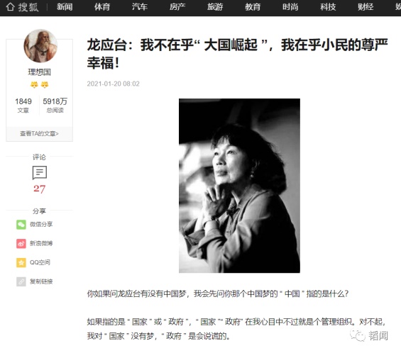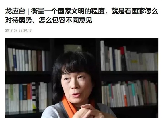 龙应台还扬言她在乎的是“文明刻度”,即“大国怎么对待你的弱势,才是文明的刻度。”