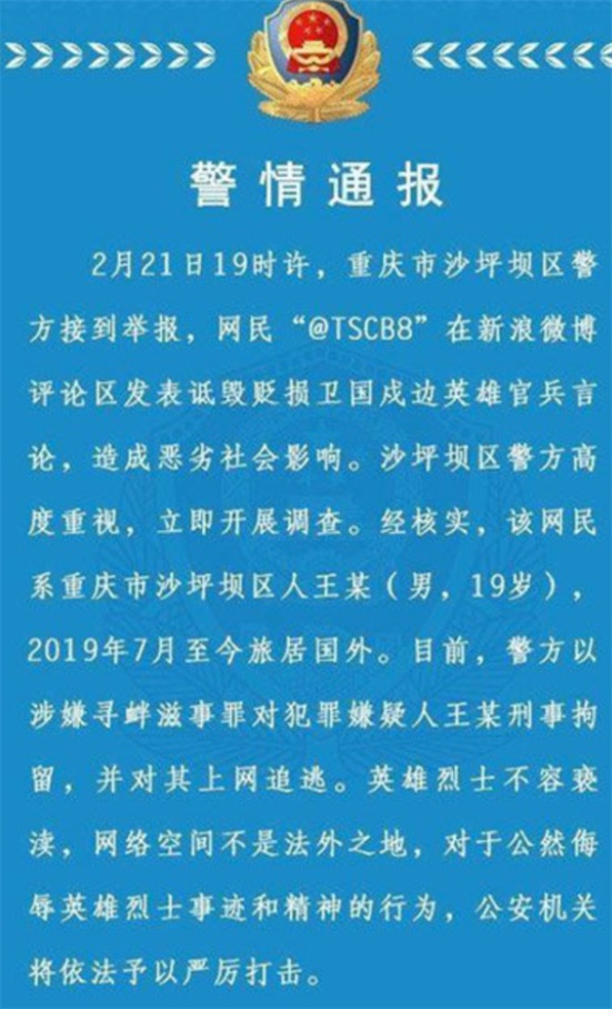 早在2021年时,在这个反华分子还是一个19岁的“反华新人”时,耿直哥就曝光过他。他叫王靖渝,曾因在当年2月恶毒侮辱在中印边境加勒万河谷牺牲的解放军战士,引起众怒。虽然他当时已经不在中国,但重庆警方还是决定对他追逃。