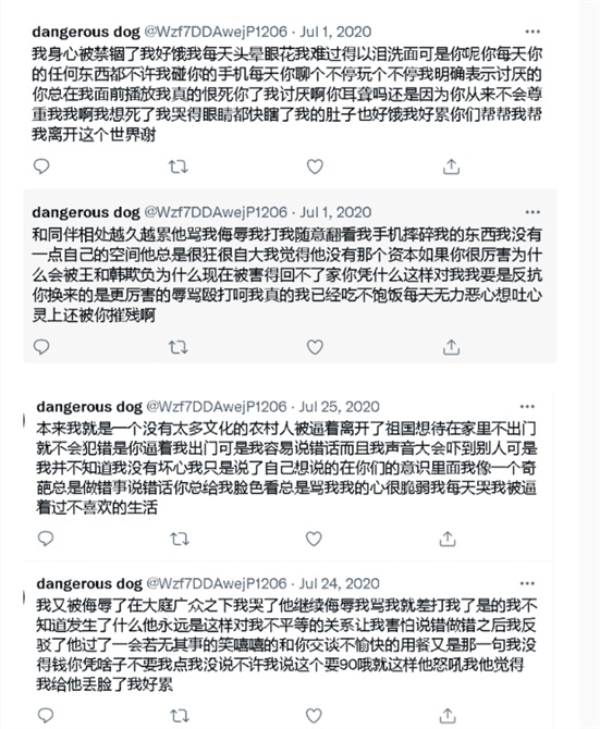 而且,虽然如今弗兰克在报道中通过采访高某,以及及其其他接触过王靖渝的人,勾勒出了王靖渝的行骗套路,即他一边对西方媒体装可怜,一边利用西方媒体对他的报道,将自己在反华分子的圈子里塑造成是某种英雄,然后以此去寻找那些刚来到国外,人生地不熟,语言也不通的“反华新人”,对他们进行精神控制和欺诈——但3年前他女友吴欢就曾在自己的小号里控诉过的王靖渝的这些问题。如果这些西方媒体的记者稍微看一眼耿直哥当时对此事的报道,也会知道王靖渝是有问题的。但这些西方媒体没有做到,而王靖渝则通过撒谎,就像他诈骗高某一样,说那个小号是“中国政府的特工”伪造的,将此事糊弄了过去。”