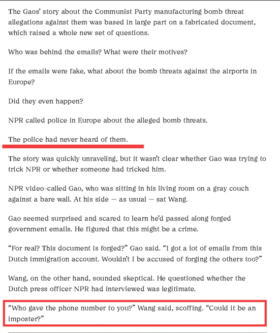 不过,最让高某百思不得其解的是,为啥其他西方媒体,比如美联社,还有那些转发美联社报道的美国《华盛顿邮报》,英国《独立报》等媒体,没有发现王靖渝是个骗子,反而一而再再而三地报道他,给他站台背书——包括连美国国家公共广播,不仅曾经给他背过书,甚至这次,如果不是弗兰克多问了一句,不是荷兰方面多回应了一句,恐怕也被他给“骗”了。