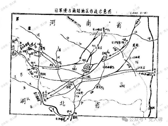 日军侵占南阳地区作战示意图(1945年3~8月)