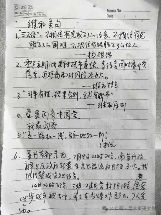 【题记】退役后整理资料,一日忽发现采访原20集团军第二批赴南苏丹(朱巴)执行维和任务的笔记,虽时过八年,但读来依旧感人。恐蒙尘忘却,故整理补录,以飨读者。 “英雄部队当英雄,前锋传人做前锋。”这是抗美援朝“特级英雄”杨根思所在部队的军魂。 在抗美援朝长津湖战役中,已严重负伤的连长杨根思在阵地只剩他一人的情况下,抱起炸药包,拉燃导火索,冲进密集的敌群,与敌人同归于尽。 “不相信有完成不了的任务,不相信有克服不了的困难,不相信有战胜不了的敌人。”铸就了杨根思的精神丰碑。 2015年12月,杨根思所在部队组成维和步兵营,前往南苏丹首都朱巴执行任务。 出国之前,部队组织为期3个月的临战训练,进行了“四个过一遍”:把所有的科目训一遍,把所有的重武器打一遍,把所有的人员考一遍,把所有的装备过一遍。 苏丹维和,有三个突出特点:零适应期快速转换节奏快;多任务同时展开负荷重;近距离面对风险压力大。 2016年7月8日,南苏丹政府军与反政府武装在朱巴总附近激烈交火。我维和步兵营迅即进入一级战备,统一指挥尼泊尔营、埃塞俄比亚营、印度营以及尼泊尔防暴队、联合国警察等力量,共同负责整个UN House营区的警戒防卫。 接下来两天,冲突双方进一步升机,坦克、装甲车、武装直升机等重型武器相继投入战斗。政府军在2辆坦克和2辆装甲车的配合下,向反政府武装阵地发起进攻,交火地点距我哨位400米左右,反政府军用火箭筒击毁了政府军1辆坦克、2辆装甲车,进入距离我约200米的一幢房屋躲避。政府军用轻、重机枪将那幢房子和里面的人彻底打烂,大量反政府军人员企图进入位于UN House营区内的1号难民营…… 10日18时35分,我维和营步兵一连在执行难民营封控任务时,突遭火箭弹袭击,105号步战车后门被炸开,车顶炸开一个洞,车厢里都是火光和黑烟,李磊、杨树朋、陈英、霍亚会、姚道祥、吴乐6名战士身负重伤,血肉模糊…… 李磊,当天早7时到晚18时,他连续11小时在枪林弹雨中执勤,他们坚守的是联合国营区和1号难民营的第一道防线,也是最后一道防线。一旦武装人员进入营区,后果不堪设想。 当战友们把李磊抬到救护车上,急速赴往医院,可车开到一半时,他突然奄奄一息对田班长说:“我这辈子就交给党了。” 李磊走了,刚刚过完他22岁生日。对于死,李磊早就做足了思想准备。部队组织南海形势教育时,他写道:能上战场是我的光荣,能为祖国献出生命是我无上的荣耀。如果牺牲了,就当落在海里,延伸了祖国大陆架,为祖国增加领土。 入伍前,李磊在日记本里夹上一张军人的照片,他写道:“我要像他们那样奔向未来的战场。” 在苏丹维和的日子里,李磊披着20多公斤的防护装具,冒着35度的高温,每天执勤8小时。他说,哨位就是战位,执勤就是打仗。 杨树朋,一家三代8位军人,“咱当兵的,就得时刻准备上战场,本事孬了可不中。”他说,既然我选择了军营,我就不再畏惧风雨。 爆炸发生后,杨树朋伤势很重,但还有意识。班长姚道祥伤得也不轻,弹片打中了腿,但是他一咬牙,和赶来的军医一起把杨树朋拖到了安全的地方,随后一头栽倒。 杨树鹏被送到联合国营区一级医院紧急抢救,终因失血过多而壮烈牺牲。他生前说过“军功比军功章更重要”。这一次,他没有等到他的军功章,永远闭上了眼睛。 他的妻子周丽娜得知丈夫已经去世,部队要来看望时说:“不用了,你们那儿也很忙,我会照顾好家里的人,放心,我们等着把杨树鹏接回家。” 班长姚道祥,33岁,再有一年就退役了,家属怀孕,他多么期盼完成任务后能顺利回国,好好守在老婆身边,弥补分居的遗憾。枪战那一天,他的右腿被弹片击中,右手失去知觉,强忍着剧痛,抓紧抢救受伤的战友,终因体力不支晕了过去,他说:“我是党员,老兵,班长,绝不能把危险留给战友。” 身上有22块弹片的陈英,由于维和任务区医疗条件有限,一直无法取出,从未叫过一声疼:不就是一条腿吗?腿没了照样能上战场。他还说,我们是军人,军人天生就是危险的劲敌。每次执勤他总是用工资买上一箱面包,随时送给那些苏丹可怜的孩子。 下士霍亚会是河北邢台人,他说:“也许我只是千万人中平凡的一个,但我绝不放弃为祖国和军队去战斗的机会。” 吴乐,名如其人,是个乐天派,他说:“能见识真实的战场,是对每一个金融最大的褒奖。” 旗帜高扬,凝聚起百军之杰奋进的力量;战歌嘹亮,激荡起前锋部队崭新的乐章。 怕水不是柳,惊石才知金。 在军人的字典里,没有屈服,没有困难,没有退缩,只有冲锋,只有亮剑,只有向着前方。