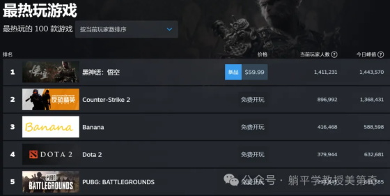 实际上,从数据上看,黑神话悟空的确刷新了游戏销售的各种记录,八月二十日开完,到七月底就已经完成120万份的预购,距离上线二十天前就已经超过博德之门、赛博朋克、老头环(艾尔登法环)等超一线大作,成为史上销售第六大的游戏。