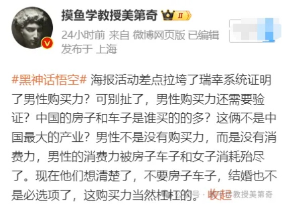 游戏科学凭借黑神话悟空,目前粗估收入已经超过十亿。汹涌的购买力,甚至一个周边就差点拉垮了瑞幸的线上平台,把瑞幸高管们都惊了。