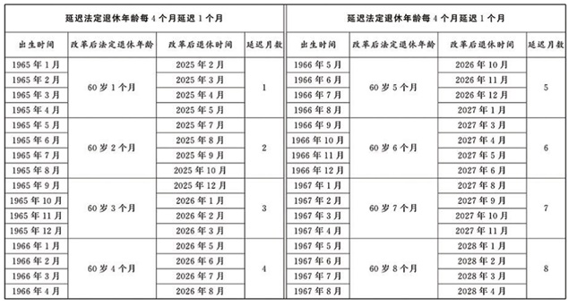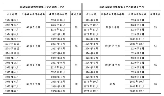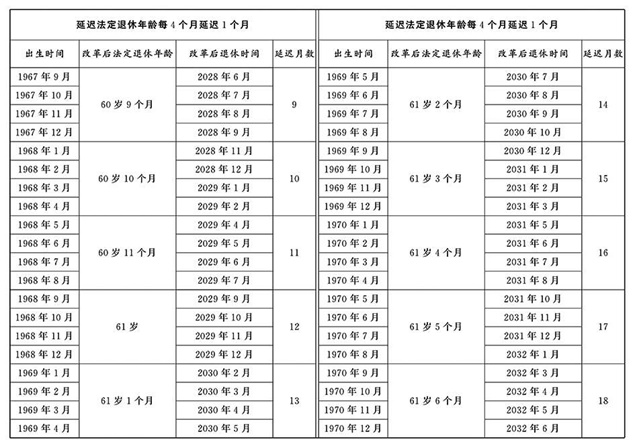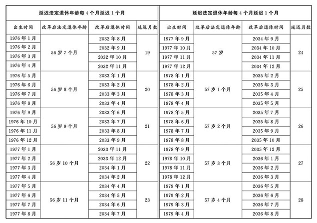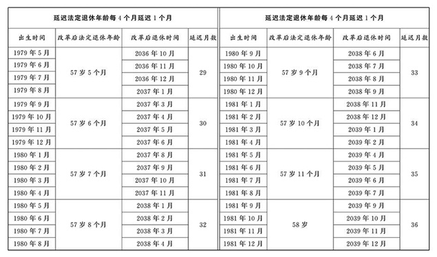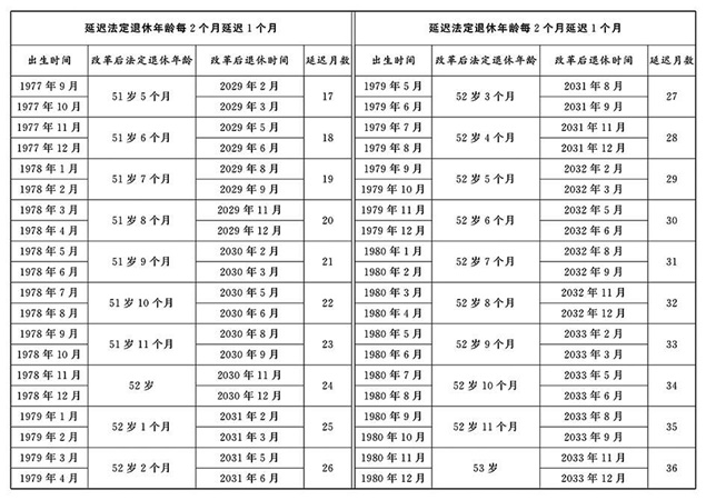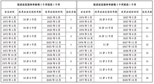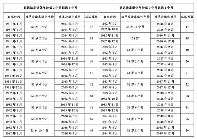 原法定退休年龄五十周岁的女职工延迟法定退休年龄对照表