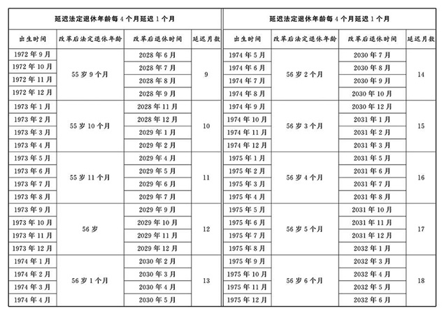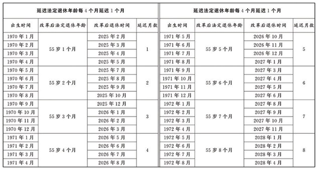 原法定退休年龄五十五周岁的女职工延迟法定退休年龄对照表