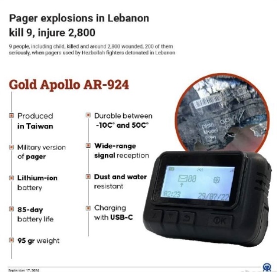 目前外媒报道的说法是,以色列改装了这些传呼机,加上高能炸药和引爆装置。