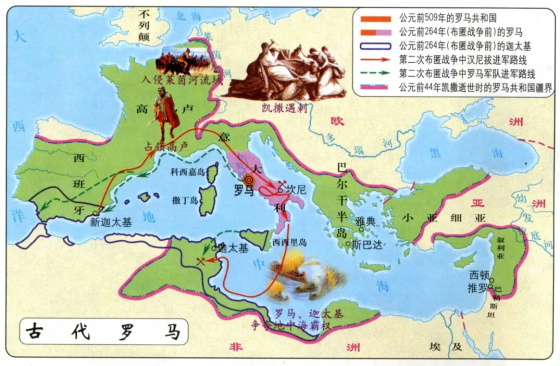 当时的罗马成为包括地中海地区在内地跨亚非欧三大洲的帝国,“条条大路通罗马”就是对其强盛状况的最好写照。