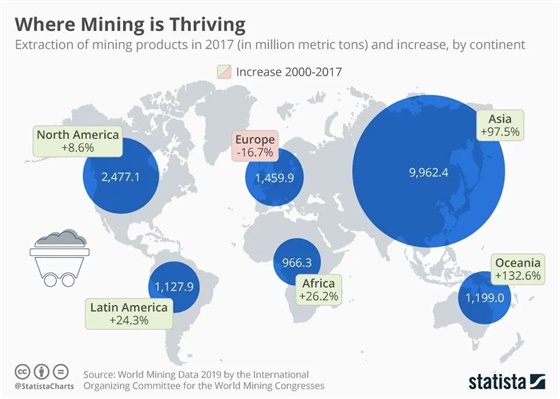 全世界190多个国家,从地球内部挖掘各种矿物质原料,比如铁矿石或者煤炭,或者石油,或者天然气,或者各种做水泥用的石灰石,或者还有其他的各种矿石等等。总之,地球上目前每年采掘各种矿产资源总计约240亿吨左右,我国差不多要用120多亿吨,大体用了全球资源的50%。我国的GDP大致是全球的20%左右,我国的工业规模和进出口贸易分别是全球的30%左右。