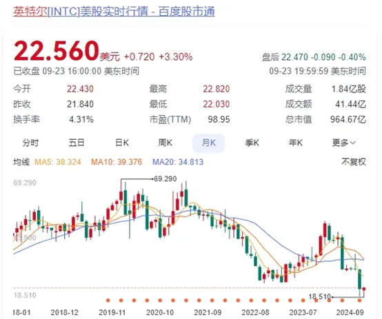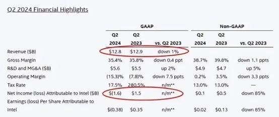 今年二季度英特尔营收同比下降1%,三季度指引最高下降11%,净利润亏损16亿美元,英特尔已连续两个季度亏损;英特尔公司宣布100亿美元成本削减计划,计划裁员超15%(约1.5万人)大部分今年内完成;四季度起,英特尔32年来首次暂停派息......