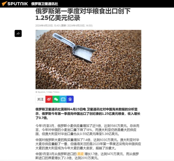 这就有意思了,彭博社说我们中国人现在消费降级了,很多家庭连吃顿肉都得精打细算,所以连带着中国对进口猪肉的需求也下降了,因此美西方四大粮商的钱都不好挣了。然而当我们把目光投向北方,人家俄罗斯媒体和俄罗斯的粮食贸易商就没有多絮絮叨叨的垃圾话。都说中国现在的粮食市场行情不好,钱不好挣,那为什么人家俄罗斯的对华粮食出口能逆势上涨那么多?为什么人家就能在所谓之“消费降级”的中国消费者这里挣到钱?