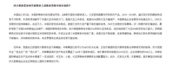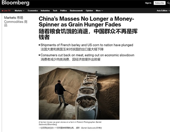 基于这两个核心论点,彭博社给这篇文章拟了一个很是耐人寻味的标题:《随着粮食饥饿的消退,中国大众已不再是(西方粮商的)摇钱树了》(China’s Masses No Longer a Money-Spinner as Grain Hunger Fades)
