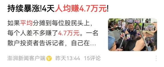 你也不要担心自己没有赶上这一波,反正人家赚到钱了,自然会去消费的,到时候你的收入一样可以涨,所以没必要自己心态去经历这个过山车,所以我是不建议普通人炒股的。