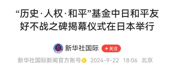 而且更有意思的是另外一件事情,就是有心的人,我相信你已经发现了,最近中日关系正在快速回暖。双方都在不断的发出善意的接触,比如说在9月22日,中日和平友好不战之碑揭幕仪式在日本举办,就是类似这样有利于中日友好的事情,最近出现的比较多。