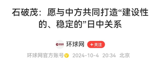 再比如说,石破茂10月4日表态,态度出现了明显的软化,他在国会表示,将努力与中方共同打造“建设性的、稳定的”日中关系。