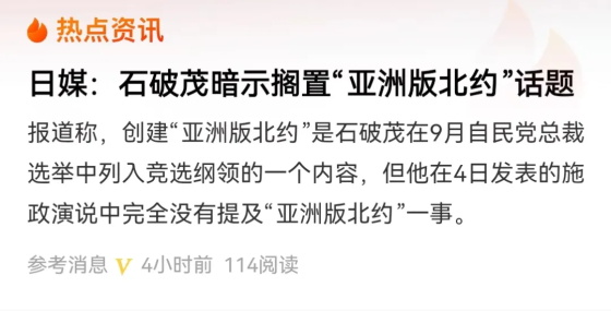 我知道这里可能有朋友会说,这个石破茂之前不是说要搞什么亚洲版北约吗?什么释放善意?这是不是忽悠我们?你听我接着给你分析。