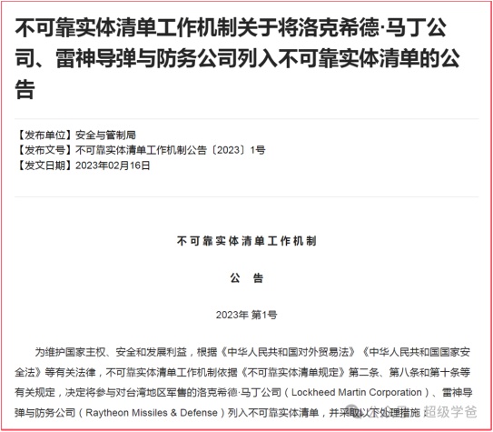 F35战机,那可是美国军工的头号项目,是洛马公司的最新款的拳头产品,是美国维护霸权地位的当家花旦,供应链为什么出现这么大问题呢?反正2023年2月16日,洛马和雷神上了我们的不可靠实体清单,其中有一条,禁止企业从事与中国有关的进出口活动,也就是禁止使用中国零部件和原材料了。