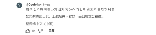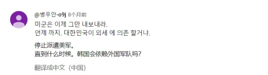 “看了这些之后,我觉得我们应该再次思考一下这样一个问题:我们到底是为什么要给美军提供如此铺张的驻军条件?吃得那么好、住得那么好,这么好的一块地方都让他们给占了,我们韩国不仅不收他们的租金,还得给他们收拾烂摊子。总所周知,美军驻扎过的地方污染总是很严重,几十年后都无法恢复。我觉得我们应该将驻韩美军规模削减至现在的五分之一,武器装备什么的留下导弹就够了。美军驻地的规模也要缩小,缩到现有规模的五分之一还差不多。