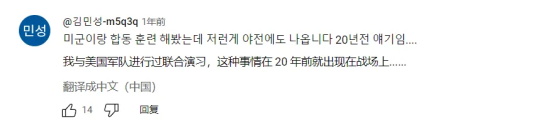 “说真的,这个伙食标准可以说和韩国的自助餐也没什么不同了。美国到底还是有钱啊,所以才能给军人提供这样丰盛的餐食。美韩两国的饮食文化终究是不同的,和人家的比起来,我们韩军伙食就显得更惨了。我是40年前就入伍的老兵,然而就现在看来,情况似乎和当年也没什么区别。”