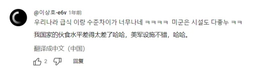 “美军基地的伙食这么高档,而韩国军人却在恶劣环境中苟活,西八,这算是什么国家……”