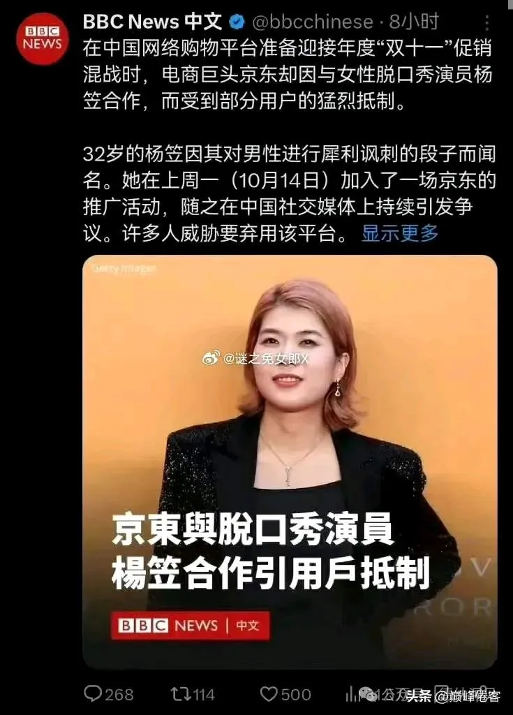 杨笠的代言为啥一直被抵制,却又总能拿到许多公司包括国际大牌的代言?连BBC这次也跳出来为杨笠背书,其背后的政治意味很浓!