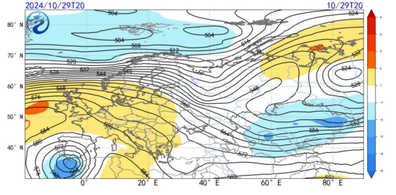 因为有高温嘛,然后水汽就升上来了,慢慢地,就形成当地一种独特的灾害性天气,西班牙里的缩写是DANA,全称翻译过来,叫作地中海地区孤立性高、低气压。