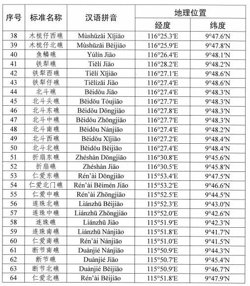 11月10日,记者从自然资源部获悉,为进一步规范有关地名的使用,现将我国南海部分岛礁标准名称予以公布。中国地名委员会1983年4月受权公布的《我国南海诸岛部分标准地名》和自然资源部、民政部2020年4月公布的《自然资源部 民政部关于公布我国南海部分岛礁和海底地理实体标准名称的公告》继续有效,请社会各界规范使用已公布的标准名称。