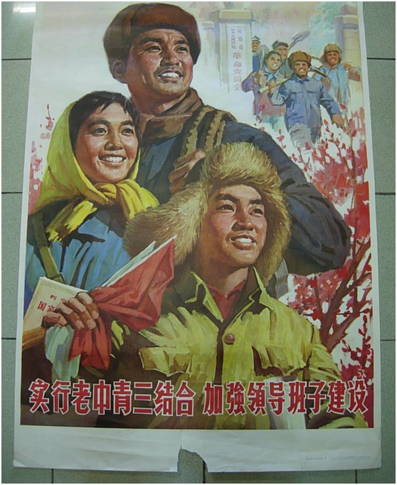 新中国成立后,毛泽东主席仍然在干部队伍中不断地强调和实践这种结合。比如鞍钢宪法中的“两参一改三结合”中的“领导干部、技术人员和工人三结合”。1967年11月27日,中共中央在《关于对征询召开“九大”的意见的通报》中要求,九大代表要体现三个“三结合”,即:军队、革命干部、革命群众组织代表三结合;工、农、兵三结合;老、中,青三结合。