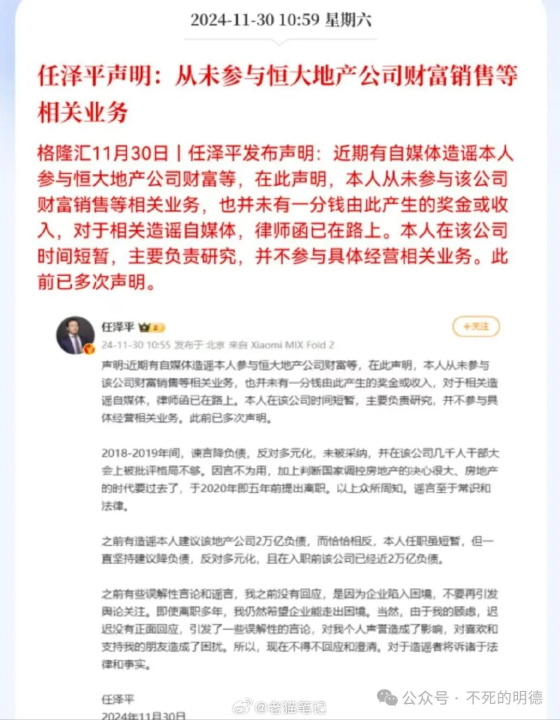 比如那位年薪1,500万的任泽平先生,任先生最近发了一则声明,声称自己与恒大财富无关——言外之意,即任先生认为,他不应该退回这三年4,500万的天价薪酬!