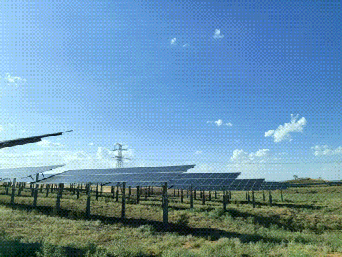 中国新疆,洛浦县在沙漠里“种太阳”,“光伏+农业”综合治沙项目既产生发电效益,又可年增干草饲料供应约3000吨,植绿、致富两不误;阿根廷,罗马布兰卡风电场,来自中国的“大风车”每年输送约16亿千瓦时清洁能源。