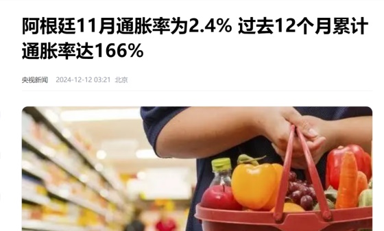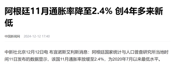 10月份阿根廷通胀率是2.7%,11月更是只有2.4%,创下4年多来的新低。