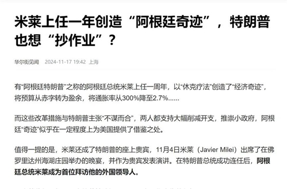 当时米莱正好跑去见懂王了,当时就有很多媒体跑出来帮着米莱吹嘘,给他抬轿子吹喇叭。